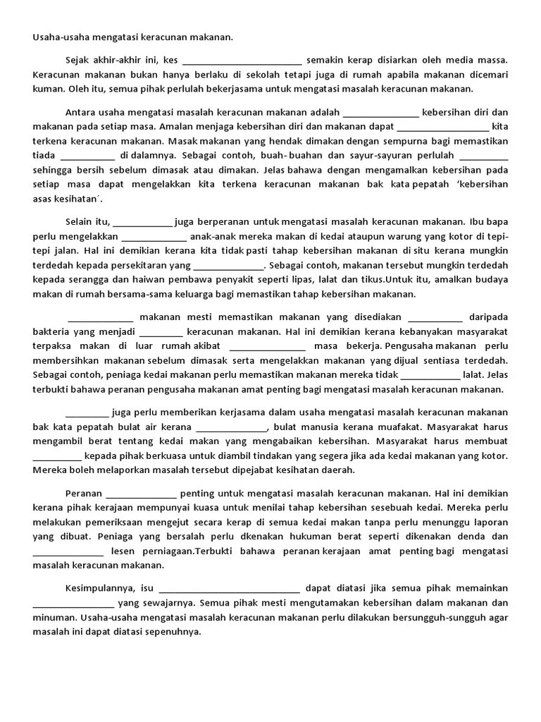 Akibatnya, kejadian keracunan makanan terus menerus berlaku di sekolah. Karangan esei bahasa malaysia bm stpm. Antara punca utama keracunan makanan di sekolah adalah disebabkan sikap pengusaha kantin yang mengabaikan aspek kebersihan dalam penyediaan makanan. Isu keracunan makanan yang sering berlaku di sekolah telah membimbangkan ibu bapa. Kesimpulannya, keracunan makanan sudah menjadi satu kelaziman di negara .
